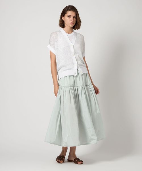 クリーンな印象をもつVネックは、ボタンを閉じて一枚でも軽やかにスタイリングしていただけます。