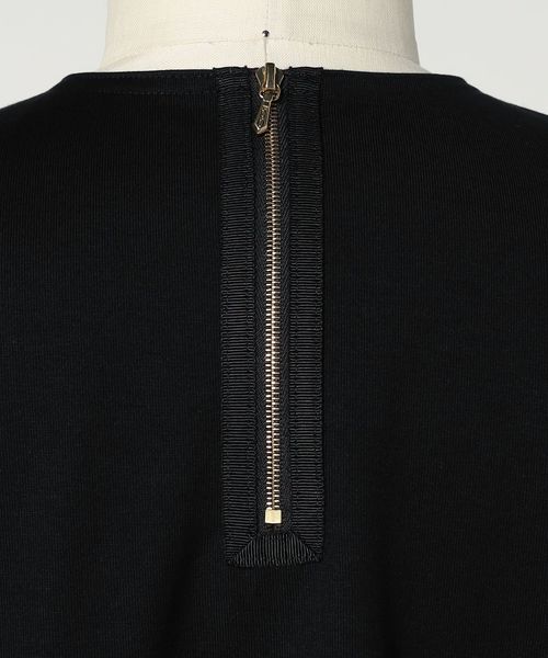後ろ襟ぐりにはファスナーを使用しゴールドがアクセントを加えます。