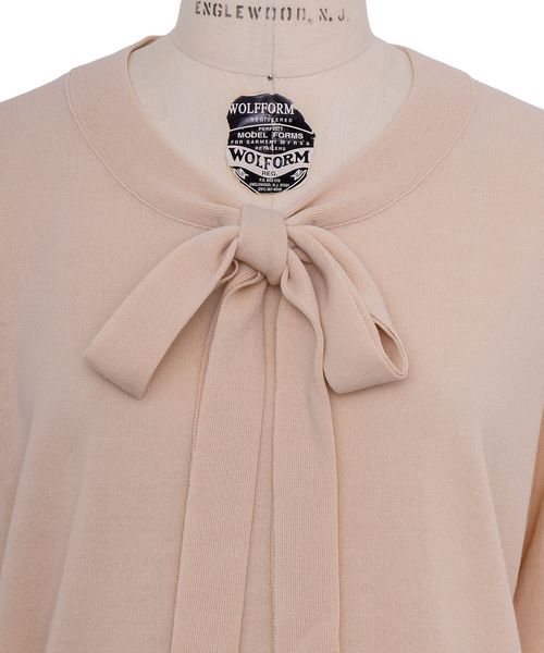 ローポイントで結ぶ新鮮なスタイルのボータイニット。