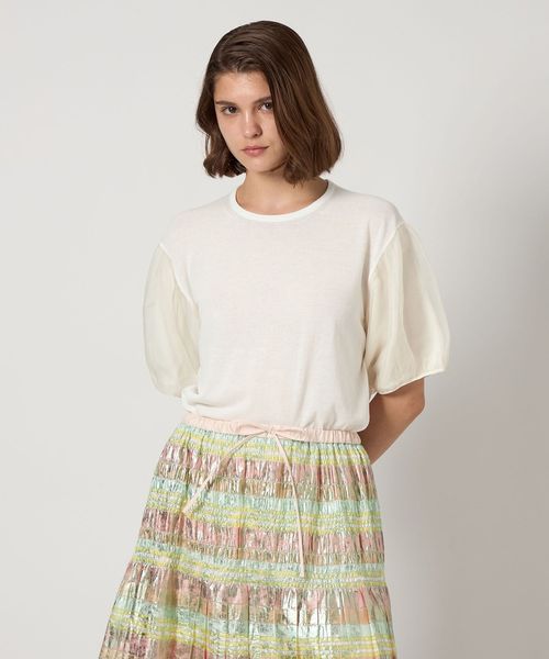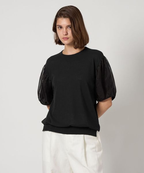 異素材のコンビネーションが優美なショートスリーブニット
