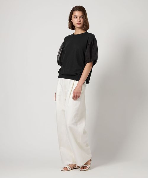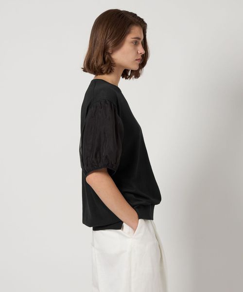 シンプルベーシックの身頃にふんわりとした丸みのある袖のコンビ仕様はスタイリングに華やかさを添えます。