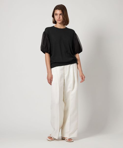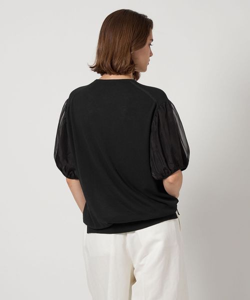 袖部分はシルクオーガンジーとニットの二重使いで、上品な艶感が美しく映えます。
