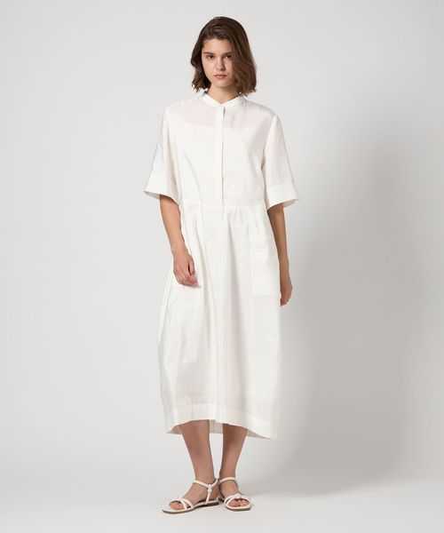 丸みのあるコクーンシルエットの半袖シャツドレス。