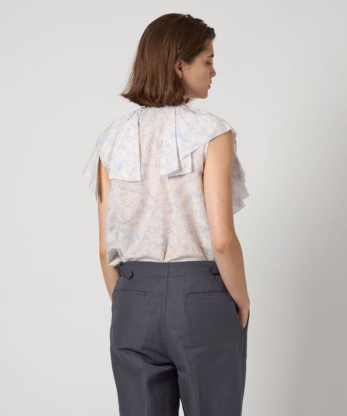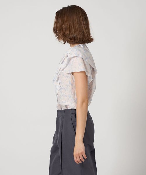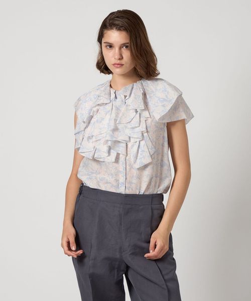 上品で繊細なフラワー柄が華やぐラッフルブラウス