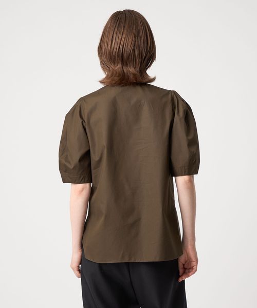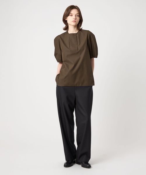 サイドオープンのフロントブザムが新鮮な印象を持つブラウス。
