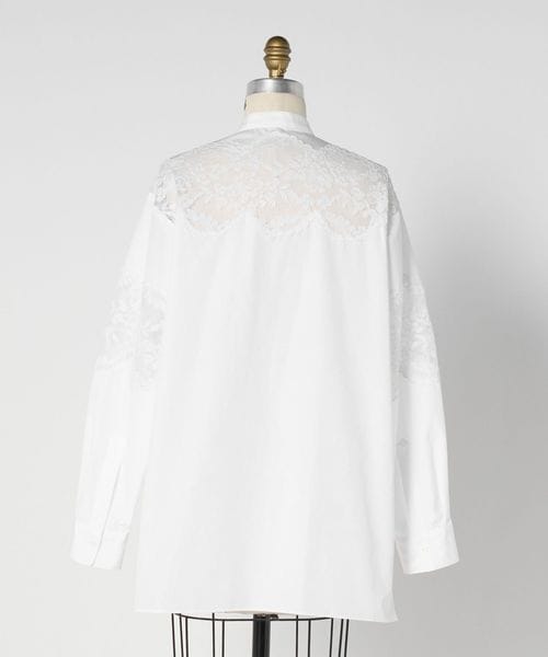 <BOWTE(バウト)>との初めてのDrawer別注アイテムとなるレースディティールが美しいシャツ。