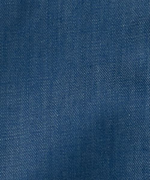 タテ糸にはフェードインディゴ染め、ヨコ糸には生糸を用いたシャンブレー構造で、色落ちによる味わいと女性らしいやわらかな雰囲気と艶感を兼ね備えています。