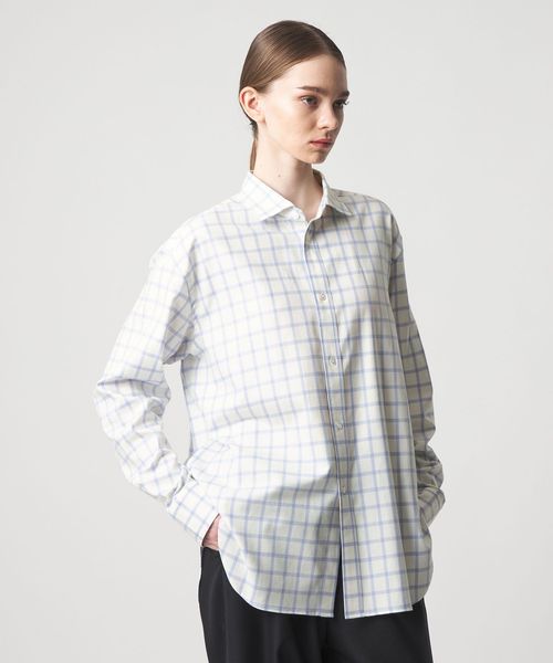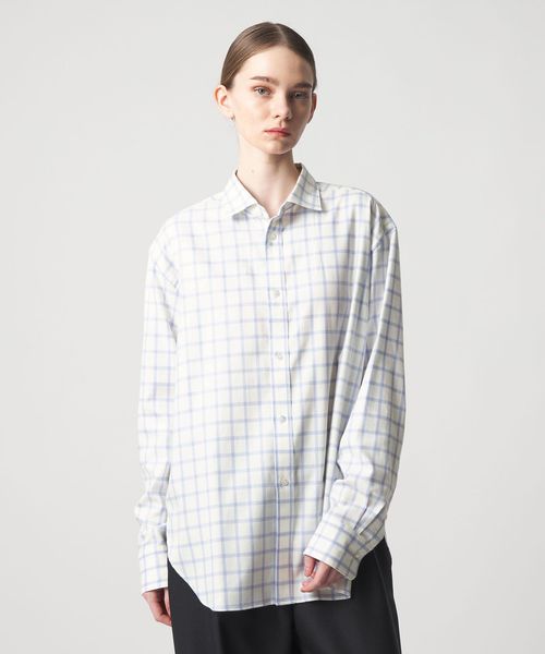 パステル調のやわらかなブルーが映えるチェックシャツ