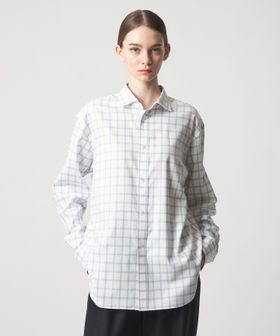 やわらかなフランネルの風合いとカラーリングが相まり、凛とした印象のなかにフェミニンさを感じれられるシャツ。
