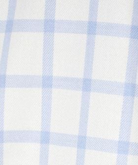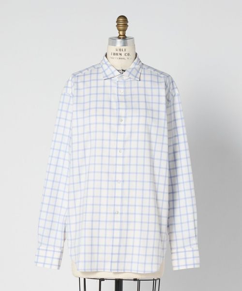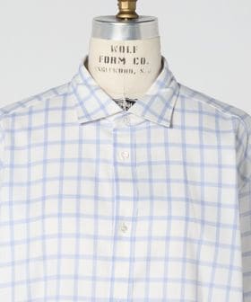 パステル調のやわらかなブルーが映えるチェックシャツ