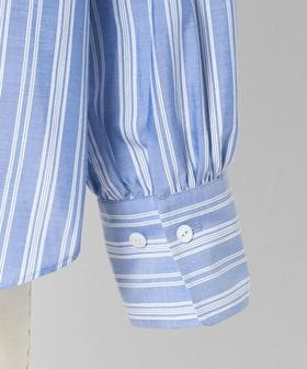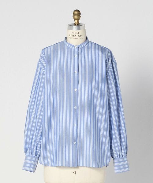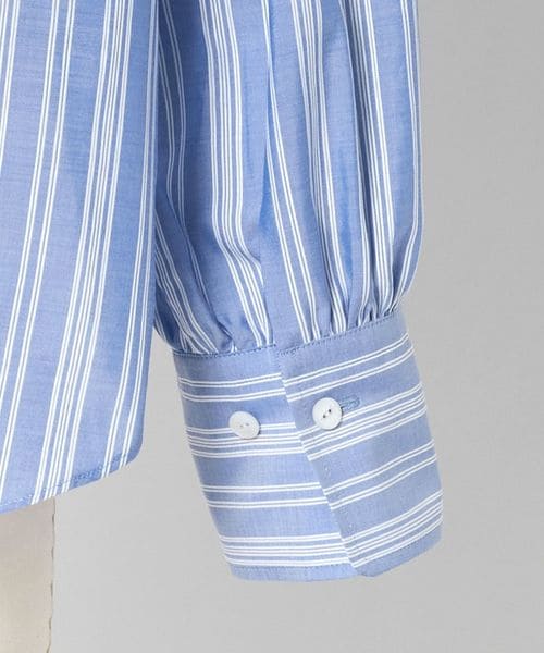 ほどよいサイズ感のバンドカラーや、袖口のカフス付けにギャザーを寄せたデザインが女性らしさを引き立てます。