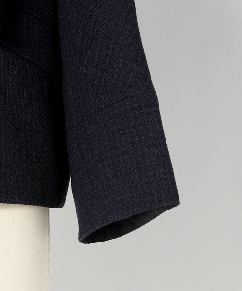 ほどよい厚みのある素材感が美しいフォルムを演出する、軽やかなジャケット。