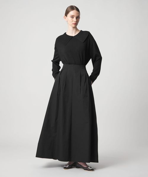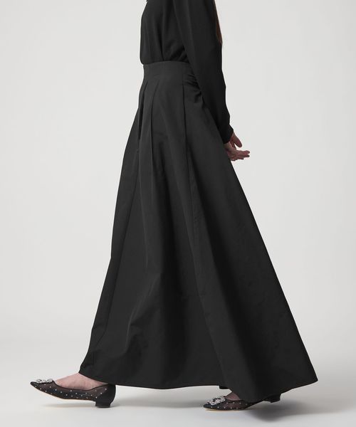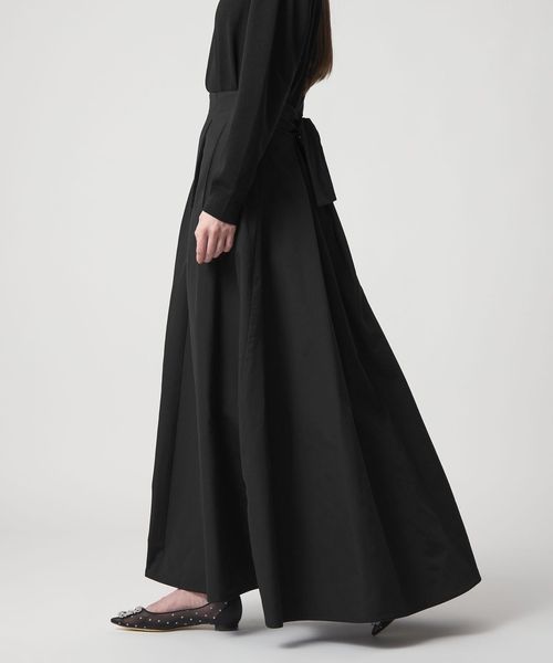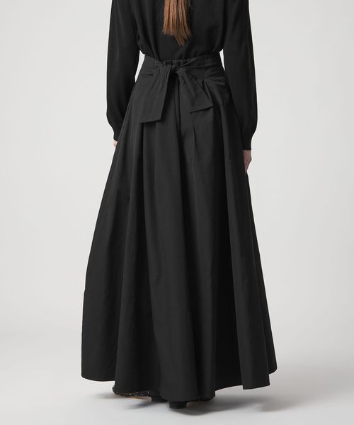リボンが後ろ姿に華を添えるロングフレアスカート