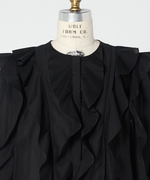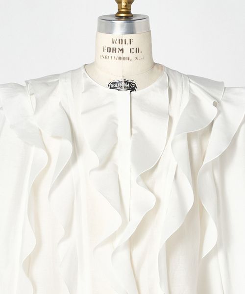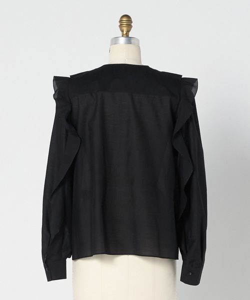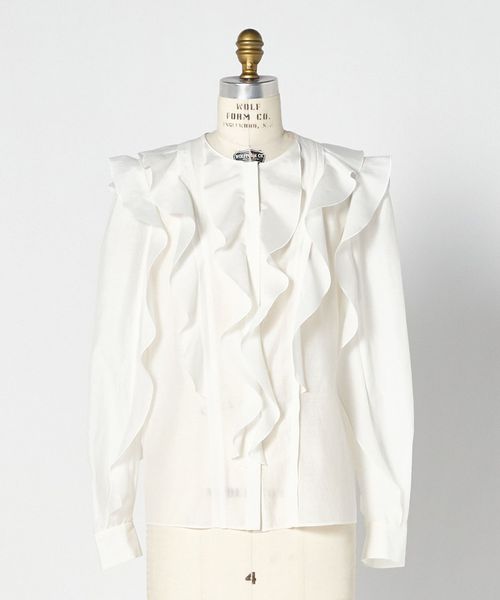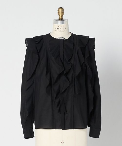 フロントとスリーブに贅沢なフリルをあしらったブラウス。