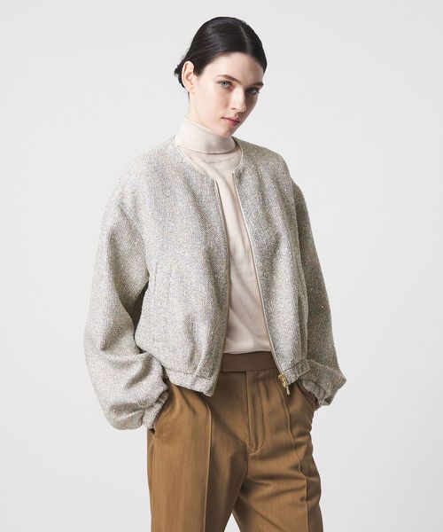 コンパクトなサイズ感とすっきりとしたノーカラーが魅力のブルゾン。