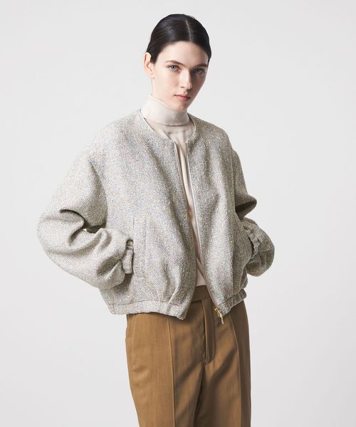 繊細なツイードにスパンコールで輝きを添えたブルゾン