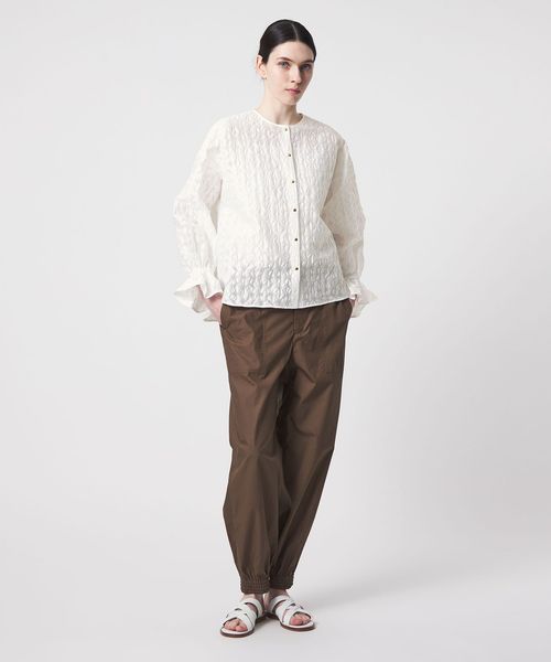 袖口切替にゴムを入れ、ふんわりとしたボリューム感を持たせたブラウス。