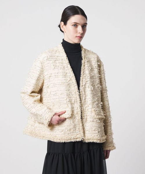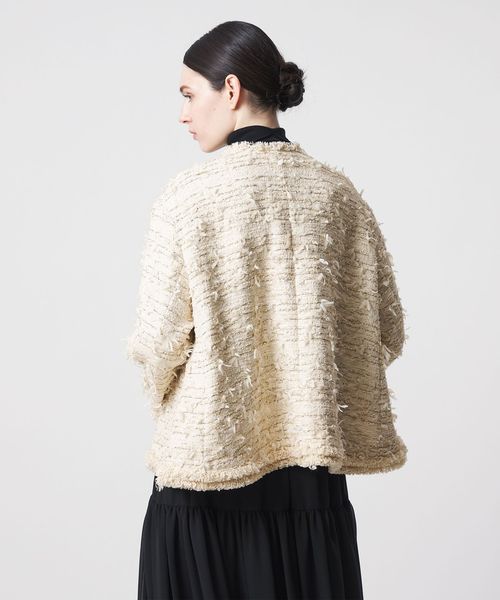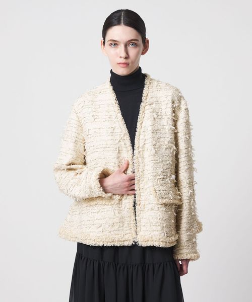 軽やかなフリンジが華やかに映えるツイードジャケット