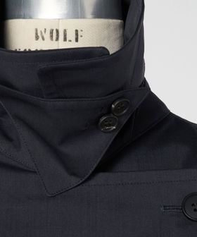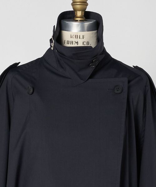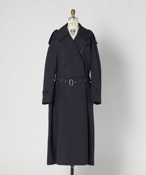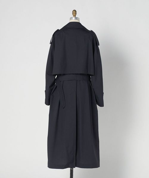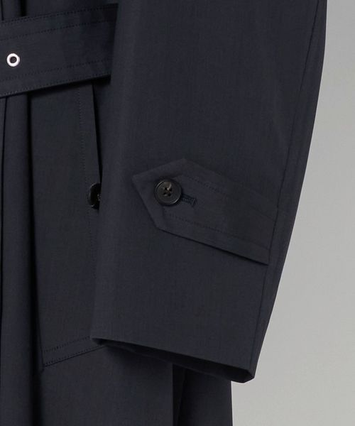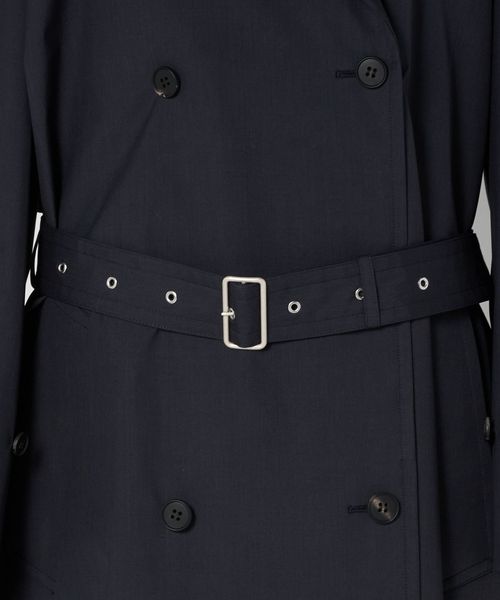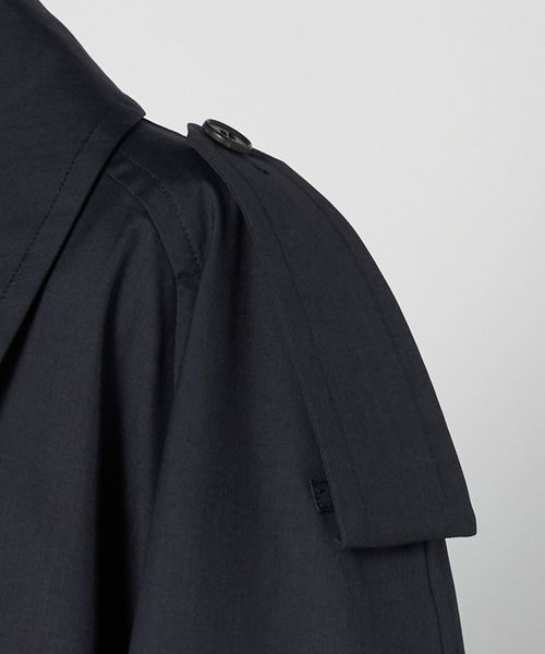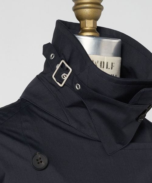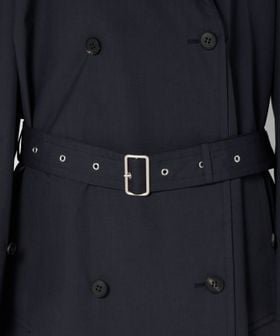 トラッドな雰囲気を残しつつ、モダンで洗練されたデザインにブラッシュアップしたネイビーカラーのトレンチコート。