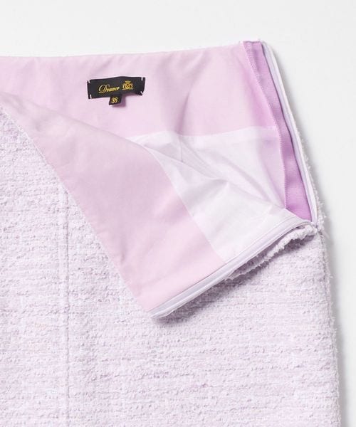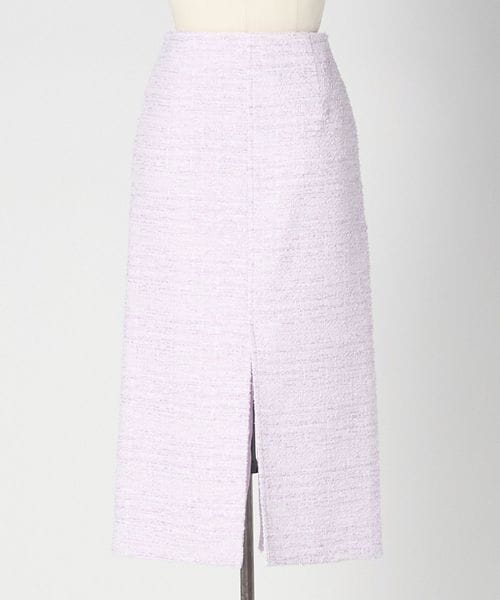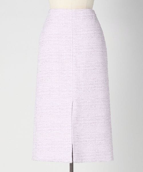 小花のグラデーションを思わせる、フォギーピンクのツイードが美しく映えるタイトスカート。
