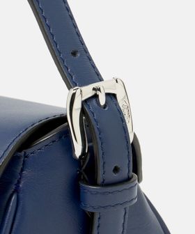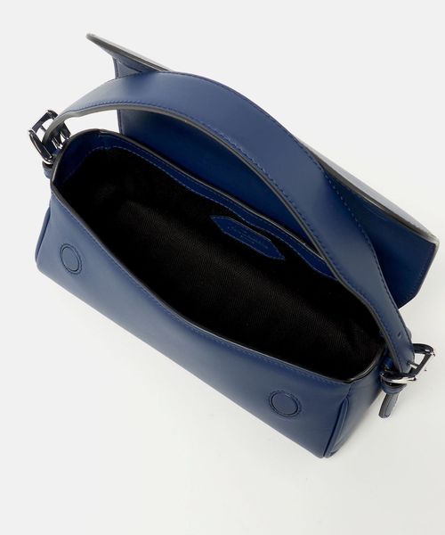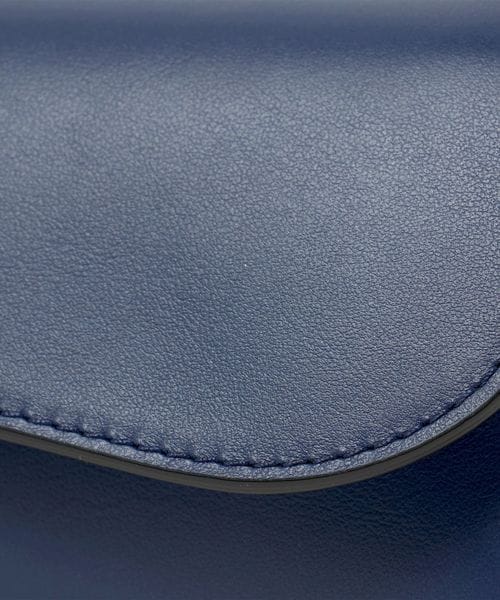 凛とした印象を持つネイビーカラーのレザーがスタイリングに抜け感をプラスします。