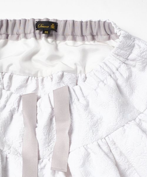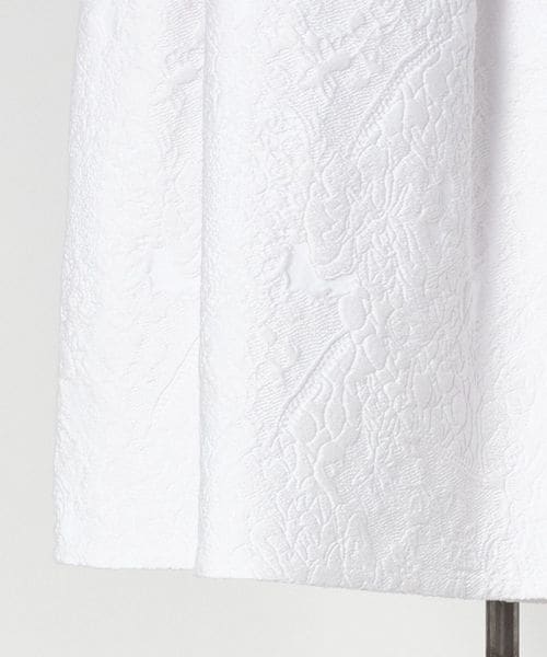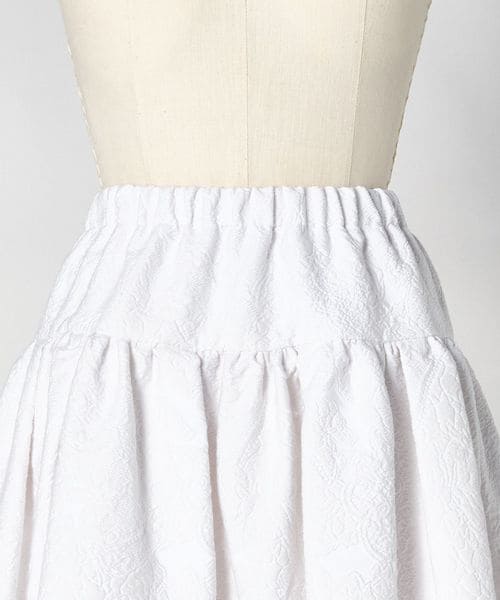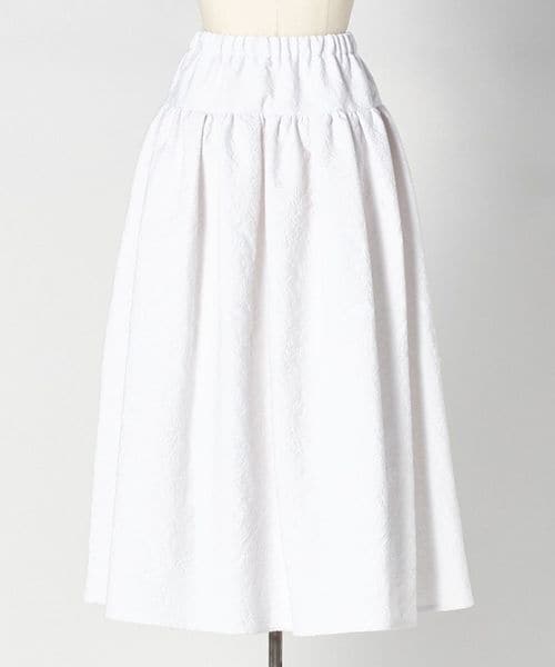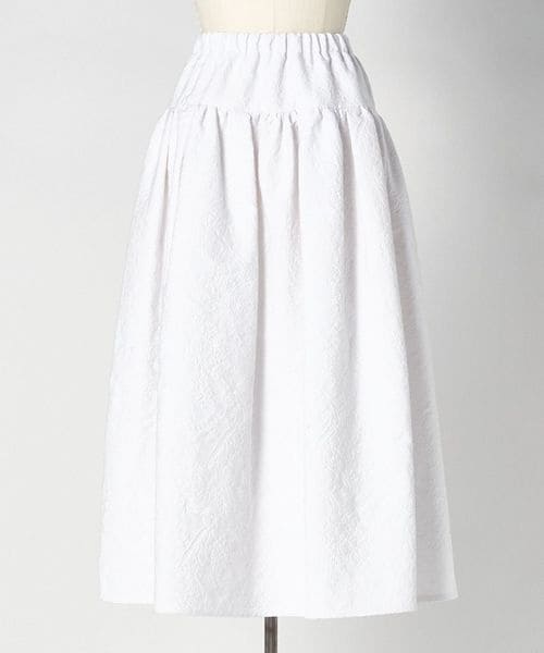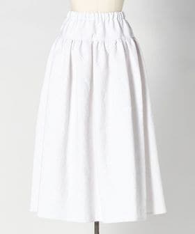 ホワイトカラーの澄んだ雰囲気に、繊細なフラワージャカードが映えるギャザースカート。