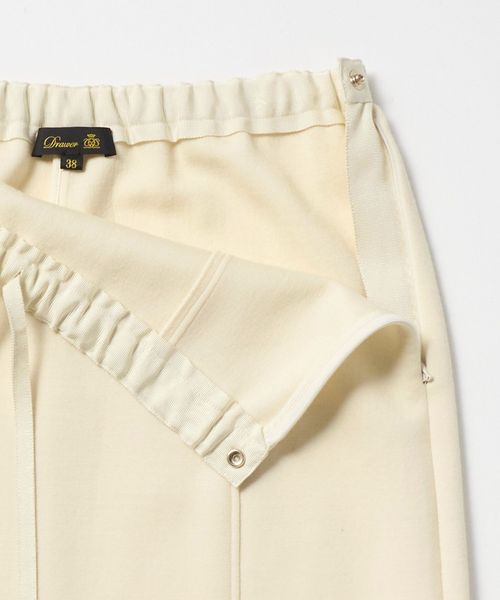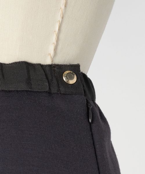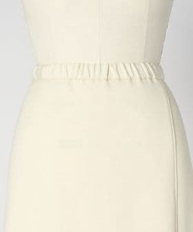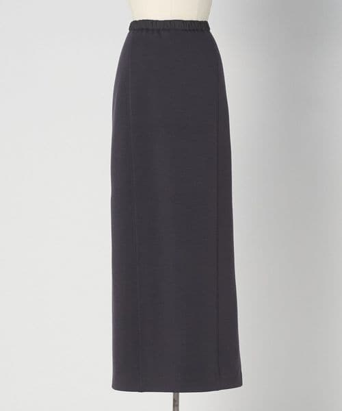 ウエストゴム仕様で仕立てた、すっきりとしたストレートロングのタイトスカート。