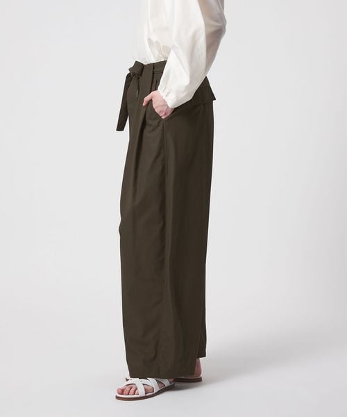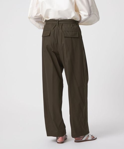 ウエストベルトはタックの下をくぐるデザインで、後ろウエストはゴム仕様。