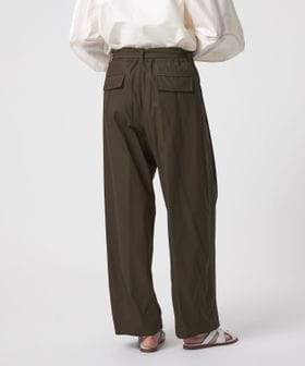 立体的なフロントタックが特徴のバレルパンツ。