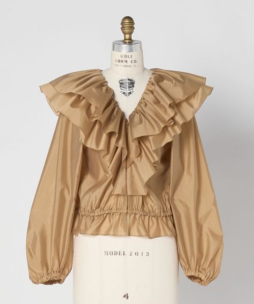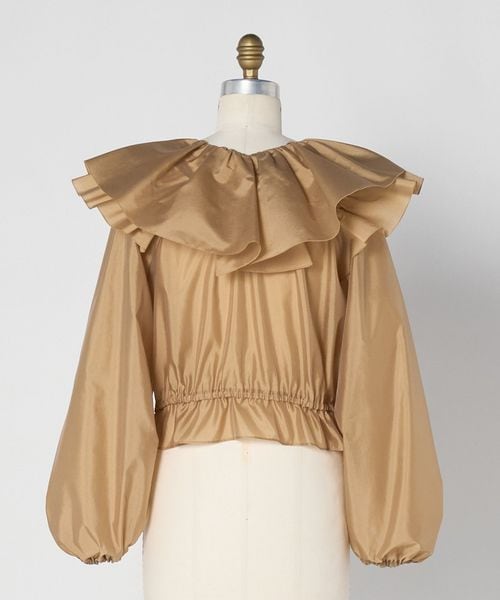 立体的なギャザーと上品な光沢が華やぎを添えるブラウス