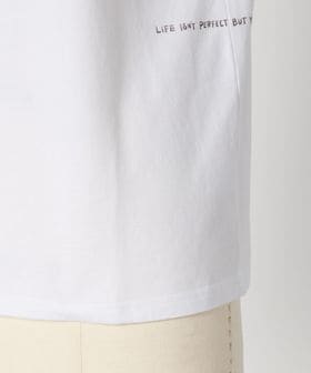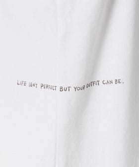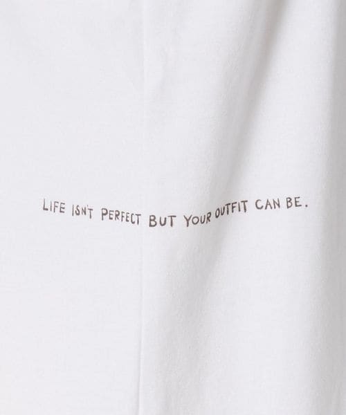 “LIFE ISN'T PERFECT BUT YOUR OUTFIT CAN BE”という前向きでユーモアあるメッセージを、彼女らしいタッチでロゴグラフィックに落とし込んだ特別な一枚です。