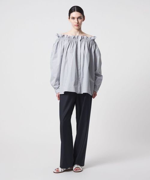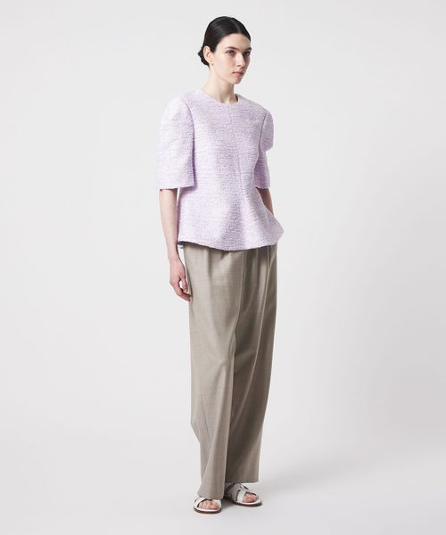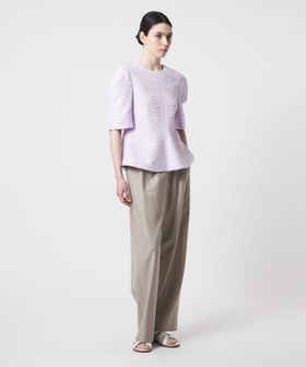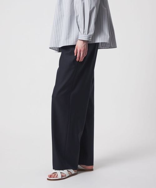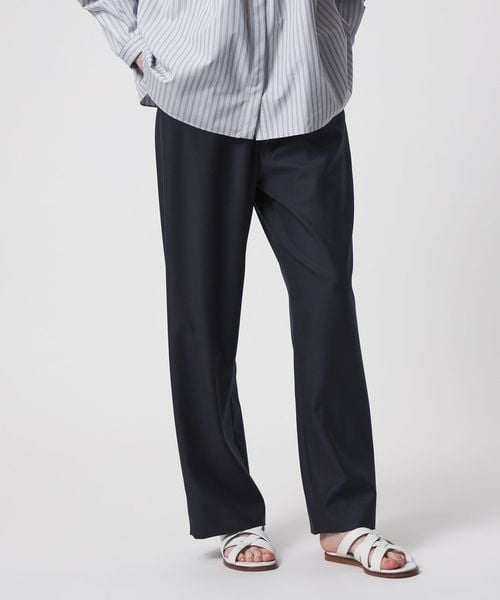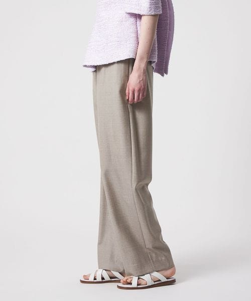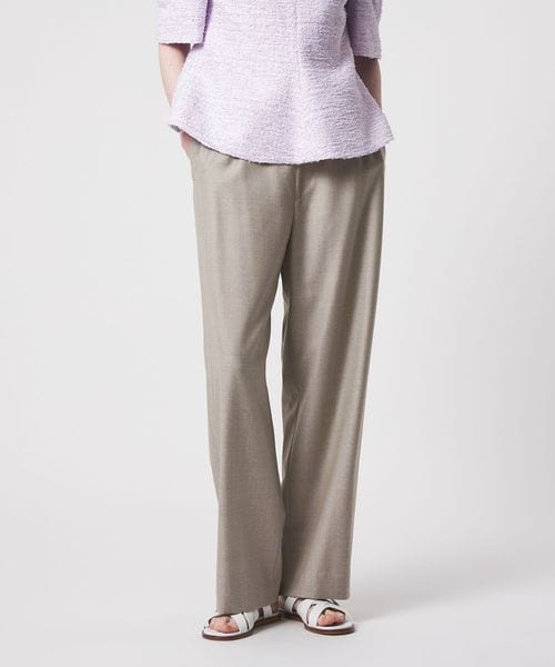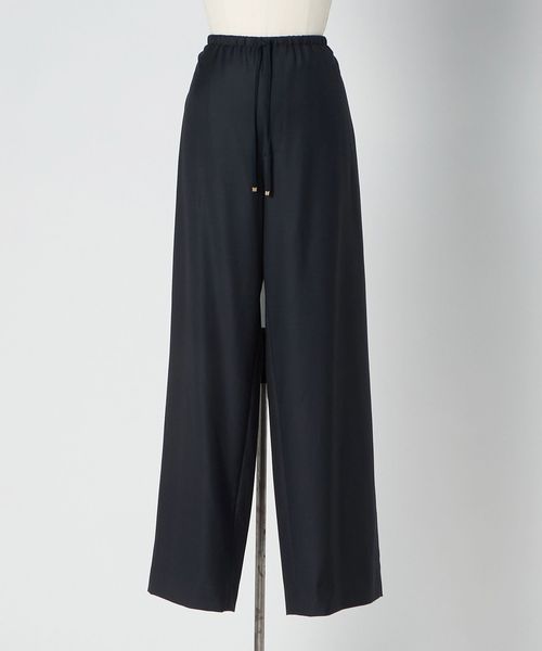 ウエストにドローコードを施し、イージーな着心地を叶えたドレッシーなドロストパンツ。