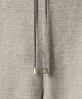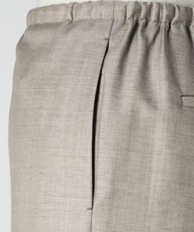 ウエストにドローコードを施し、イージーな着心地を叶えたドレッシーなドロストパンツ。