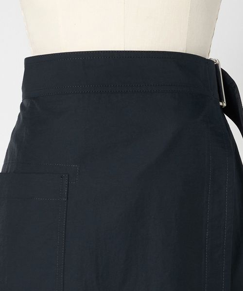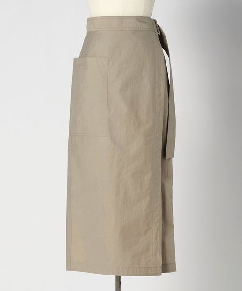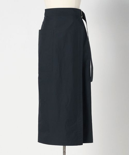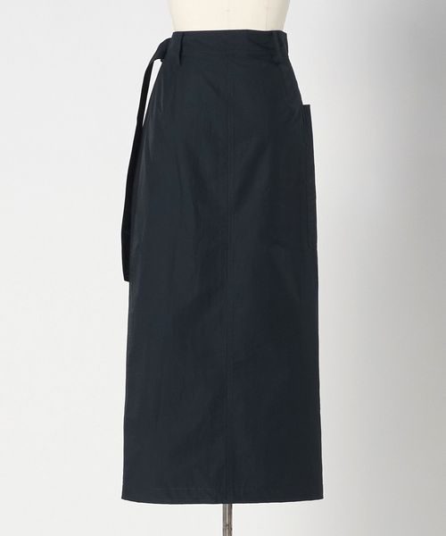 ロングタイトのすっきりとしたシルエットに、サイドの大きなポケットがアクセントになったスカート。