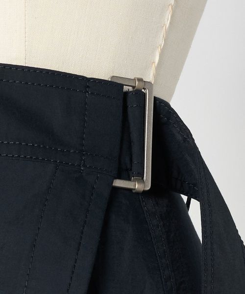 ウエスト内側にはサイズ調整ができるボタンを備え、スタイリングに合わせてウエスト位置を変えられるデザイン。
