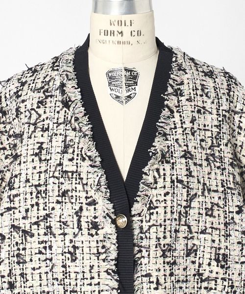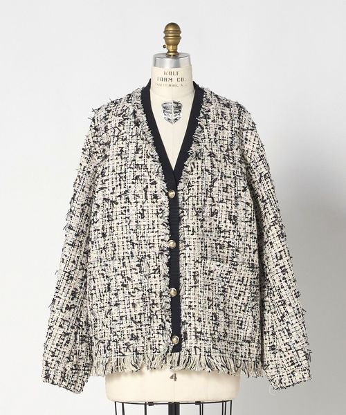 カーディガン感覚で羽織れるVネックのツイードジャケット