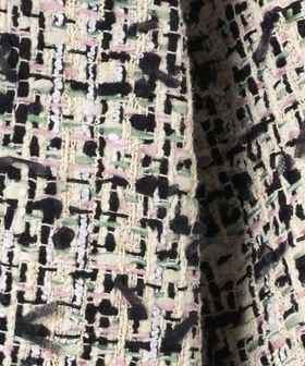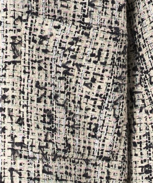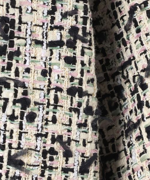 明るいパステルカラーにブラックが甘さを引き締めているミックスツイードを使用。