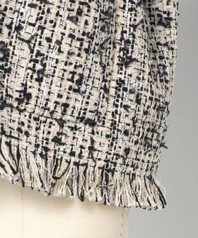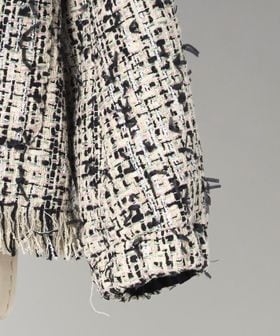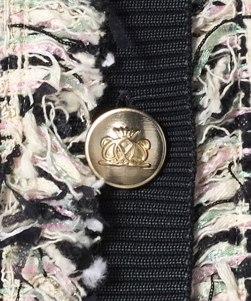 パステルツイードの華やぎと、ブラックの効かせたカラーリングが上品に調和したツイードジャケット。