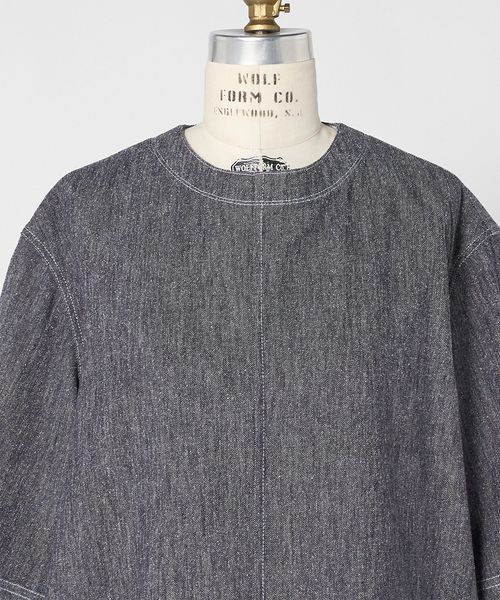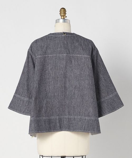 コットンシルクのデニム調素材で仕上げた、ショートスリーブブラウス。