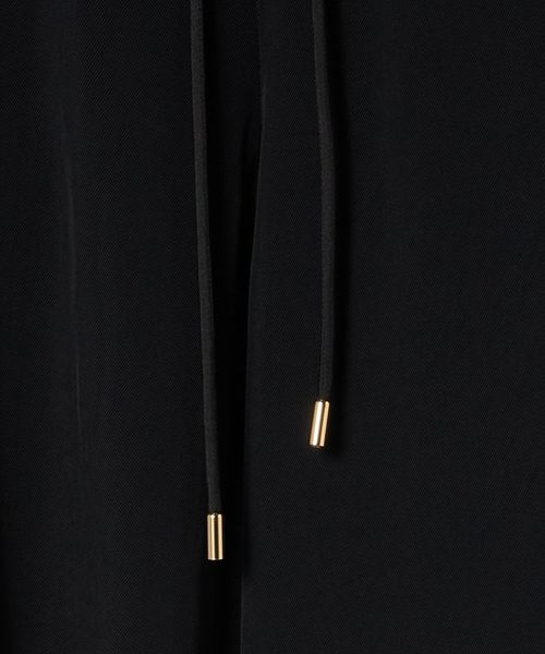 ボリュームのあるデザインながら、落ち感のある素材とブラックカラーが全体を引き締め、シックで存在感のある仕上がりに。