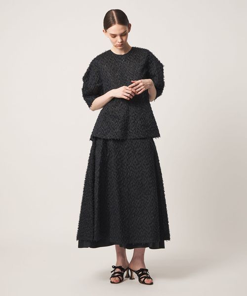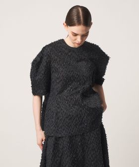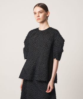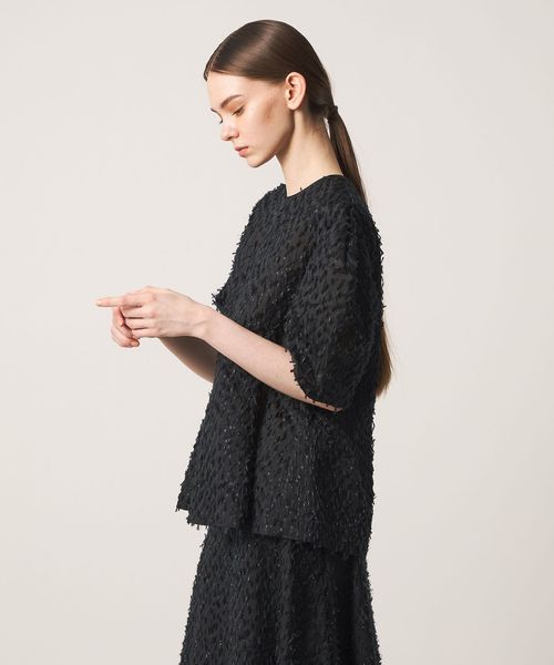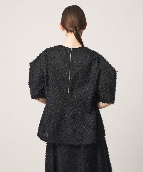 シャギー感のあるジャガード素材が美しく映えるショートスリーブブラウス。