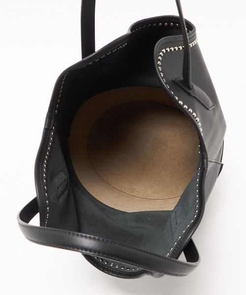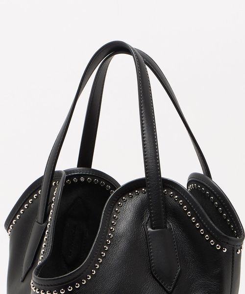 曲線美にスタッズの輝きがアクセントになったレイバケットバッグ