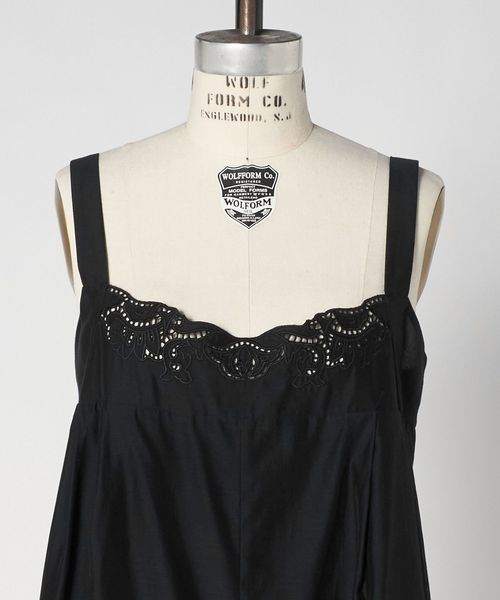 裾と胸元にオリジナルカットワーク刺繍をダイナミックに施しています。