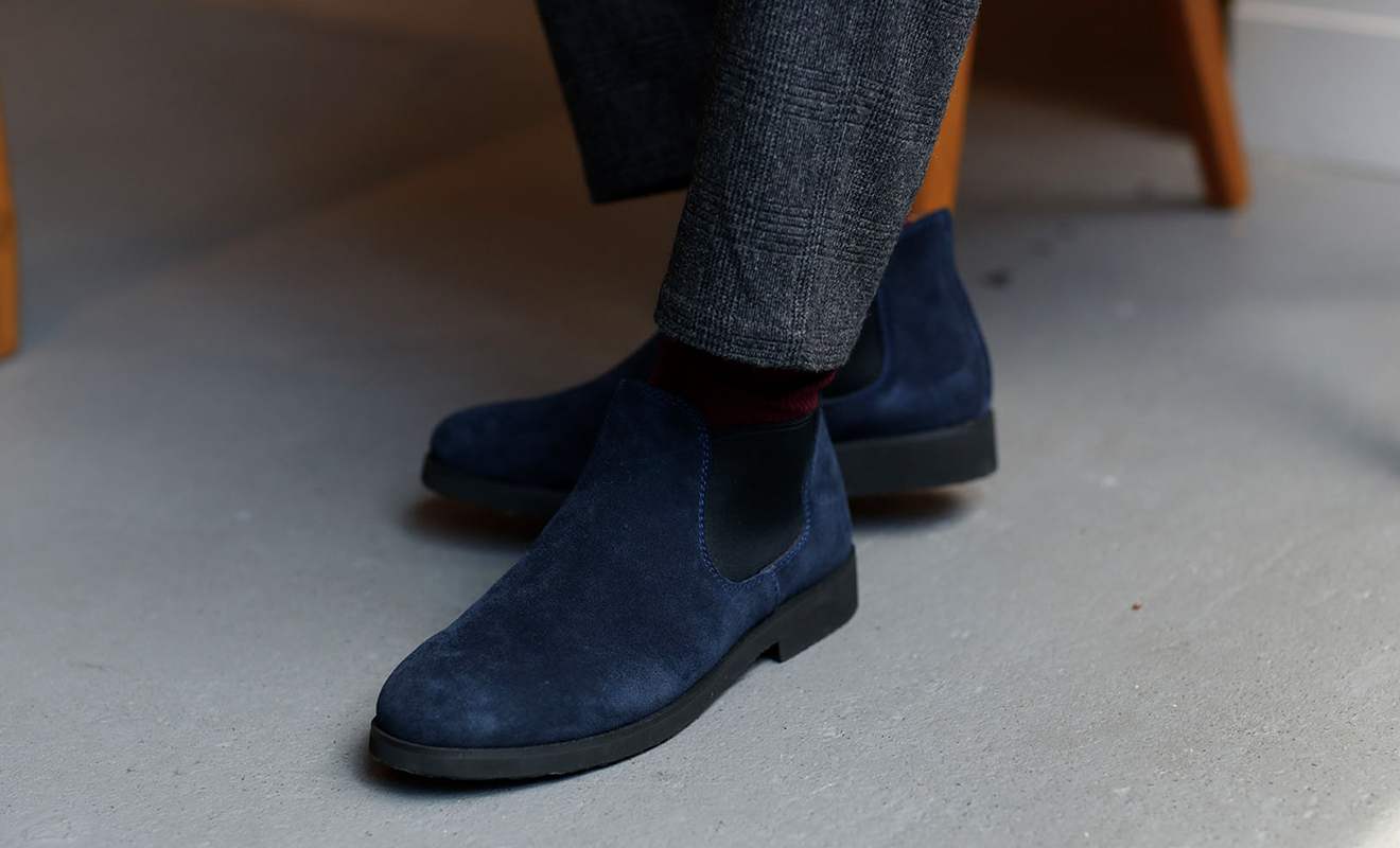 レザーシューズは何色を選ぶ?オーソドックスな黒か、秋冬らしいブラウンか。その定番の2色に、今季はネイビーを加えてほしい。グレーやブラウンのパンツとの相性は、抜群だから。