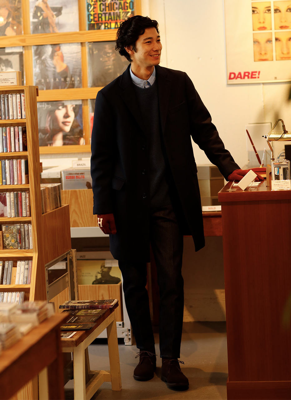 チェスターフィールドコートはビジネス用、と思っているならちょっともったいない。今季はこんなネイビーのチェスターで、上品な雰囲気のカジュアル着こなしを楽しんでほしい。しなやかな生地と、ナローラペルのすっきりとした見た目が魅力。