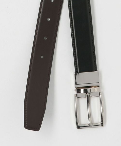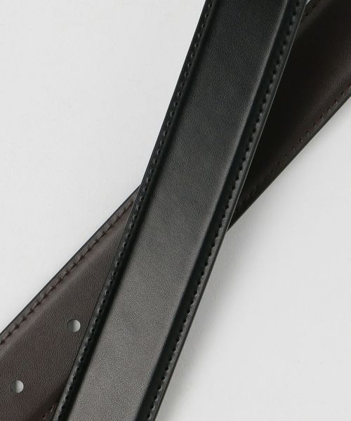 アジャスト機能付きでご自身でサイズ調節が可能。表裏のカラーはブラック、ダークブラウンで仕上げ、バックルを回して頂く事でリバーシブルでの着用も可能です。シンプルなデザインで合わせるボトムを選ばずご着用頂けるアイテム。
