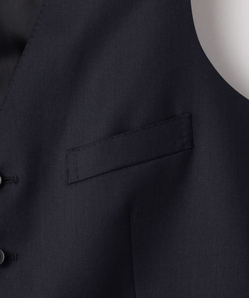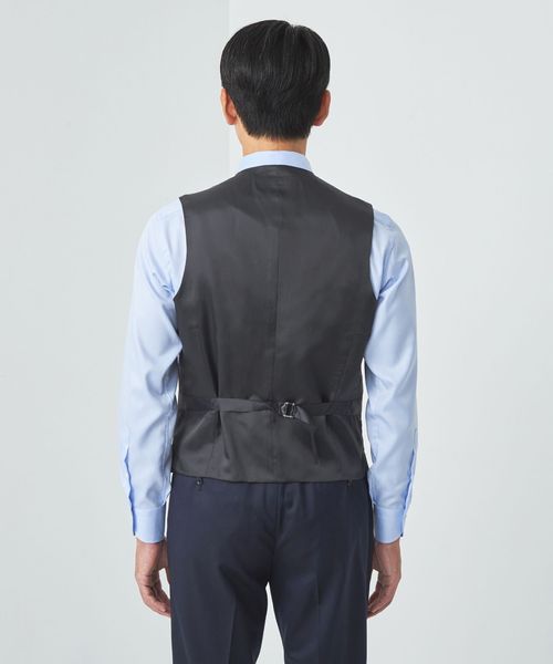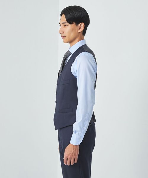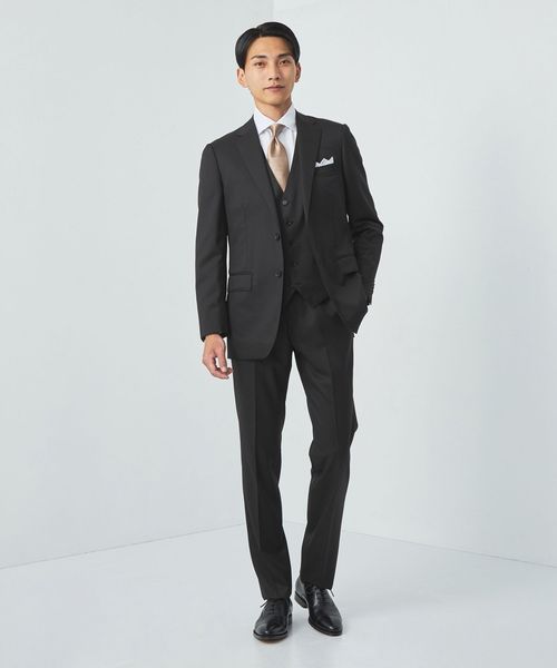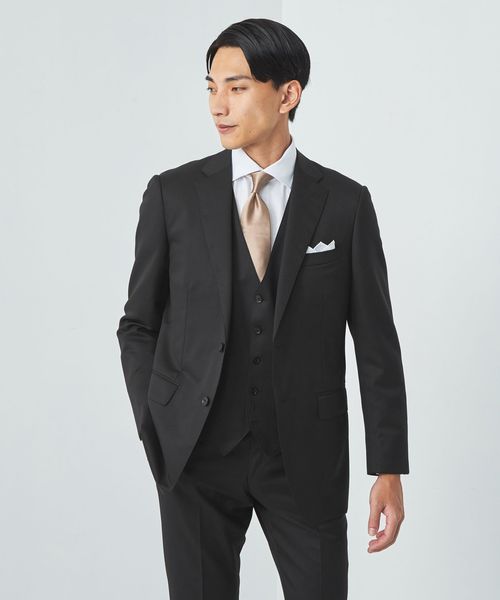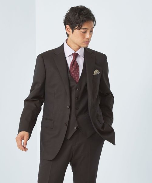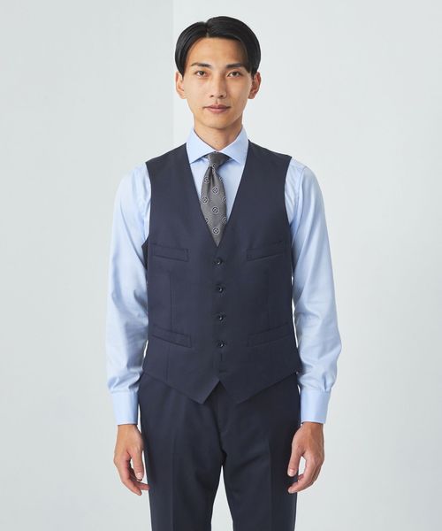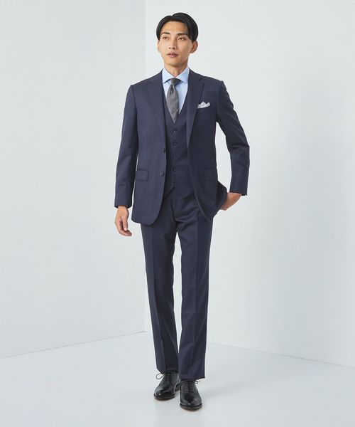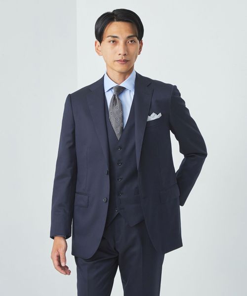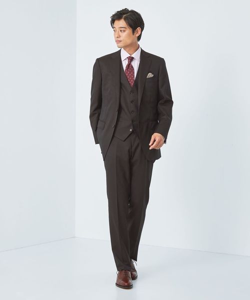 同素材セットアップと合わせた、3ピーススタイルがおすすめ。