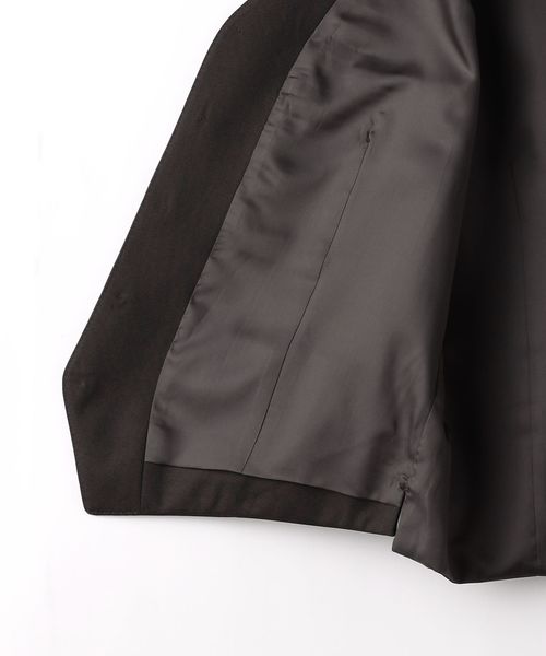 前身頃; 表生地;毛100% 裏生地;キュプラ55% ポリエステル45% 後身頃; 表生地・裏生地;キュプラ55% ポリエステル45%