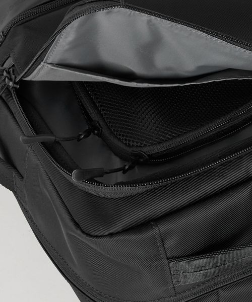 メインコンパートメント内部にはメッシュポケット、ファスナー付きポケットと内外からアクセス可能なPCポケットを搭載。
