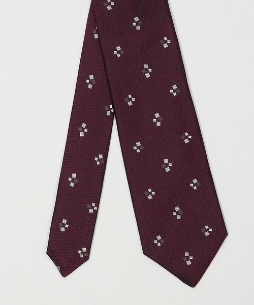四角形が並んだ小紋柄はVゾーンに落ち着きをプラス。